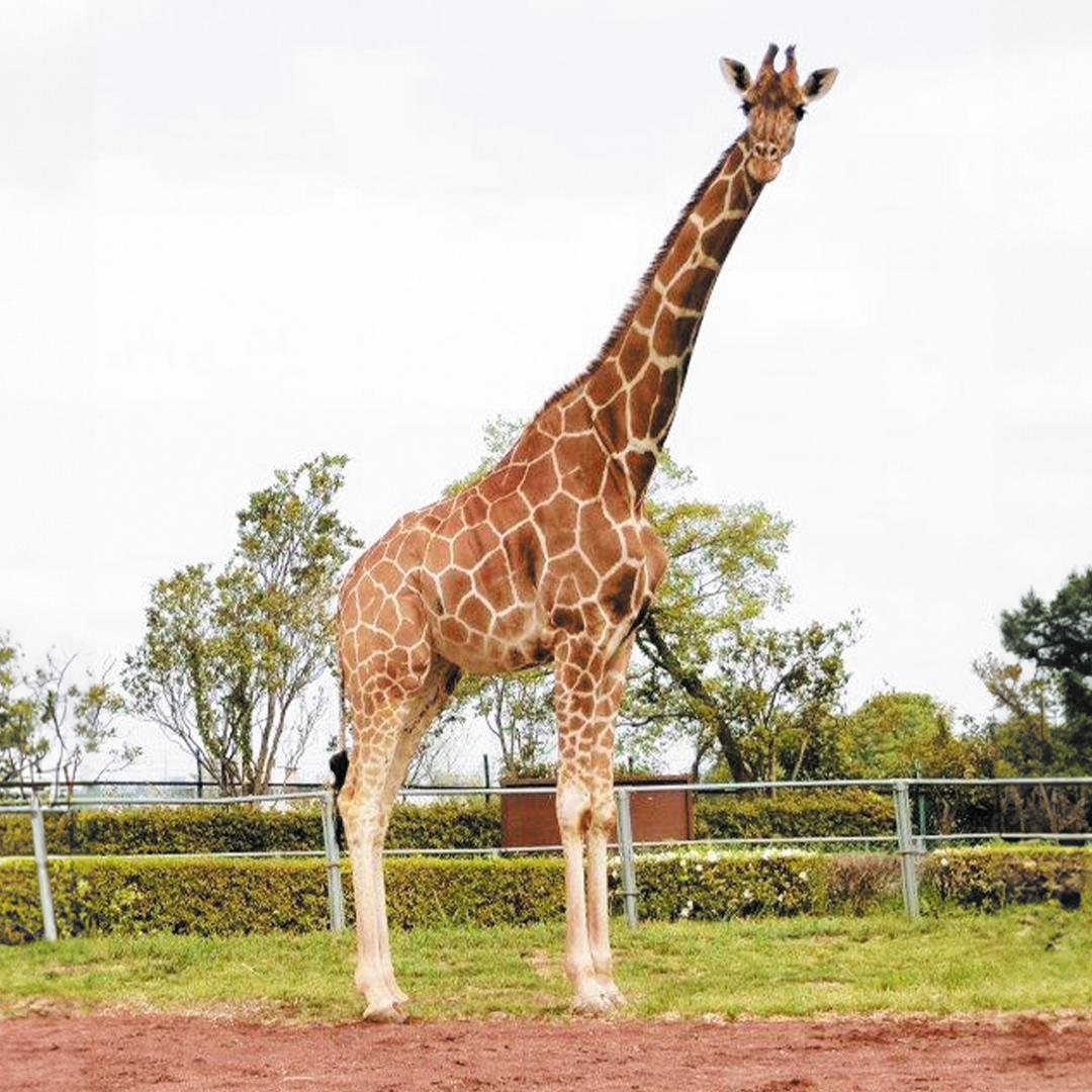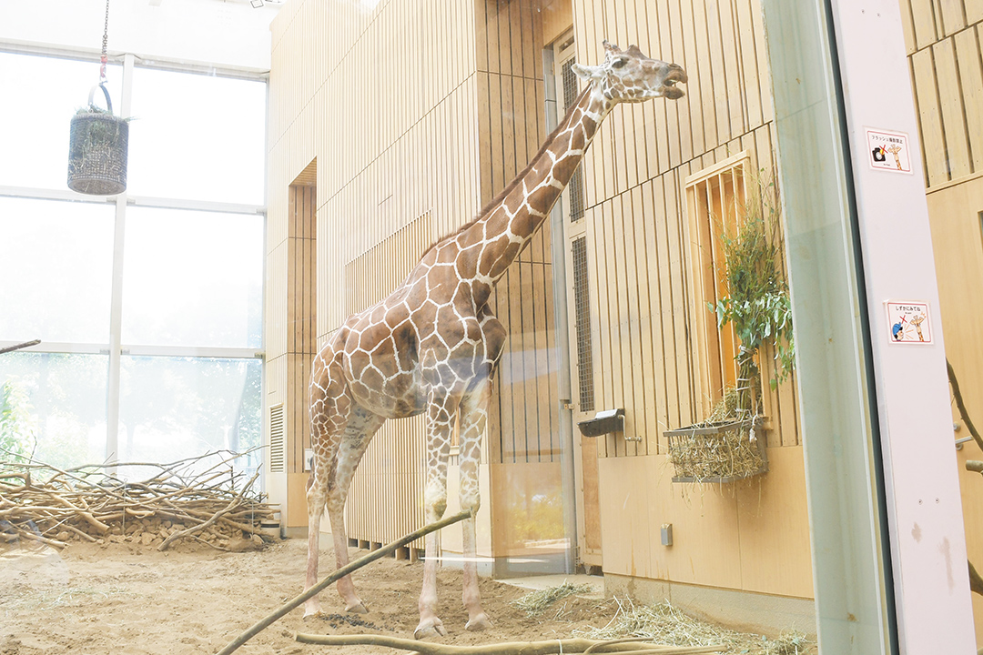 ガラス張りの「キリンテラス」で見るキリンは迫力満点。