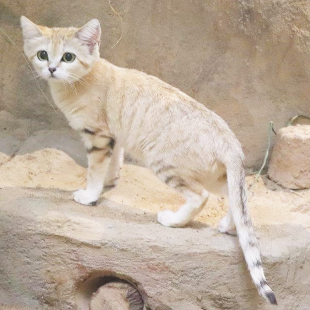 砂漠地帯でくらすため、あしの裏に毛が生え、砂漠の熱い砂にも耐えられる。
