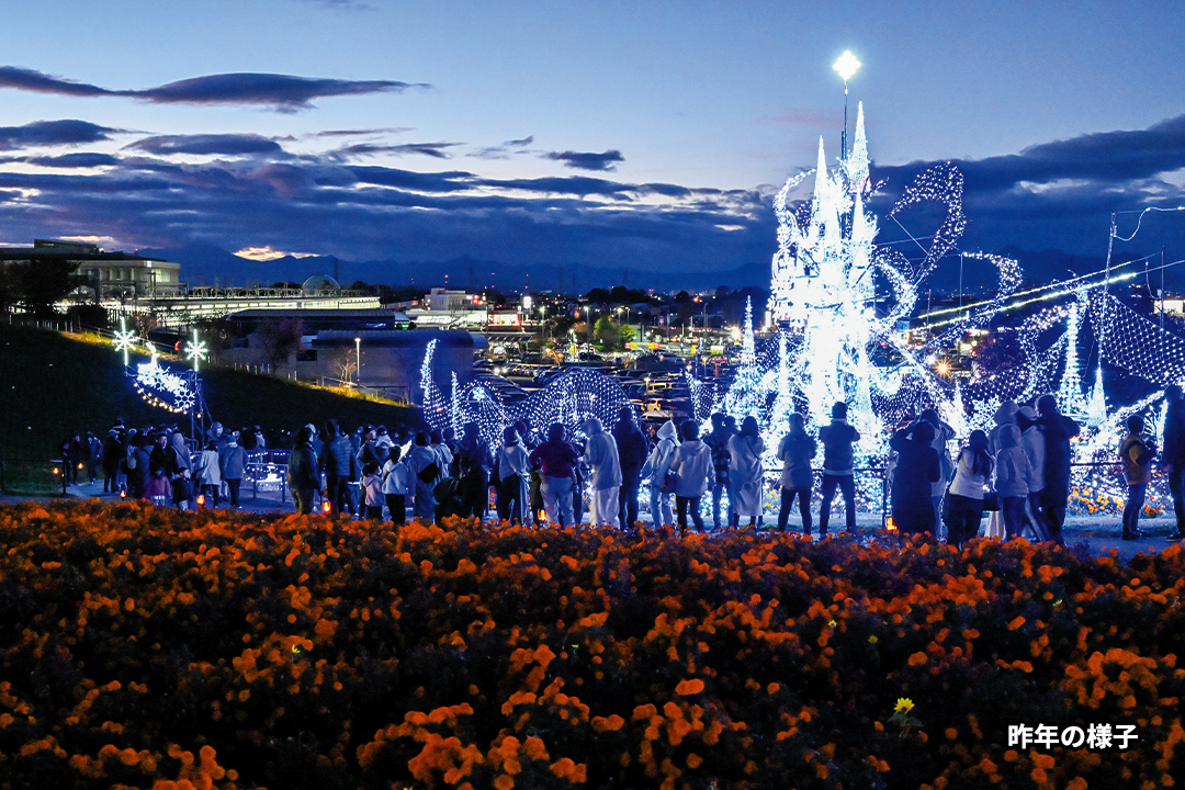 埼玉県本庄市の花の名所「マリーゴールドの丘公園」で開催されるイルミネーション。