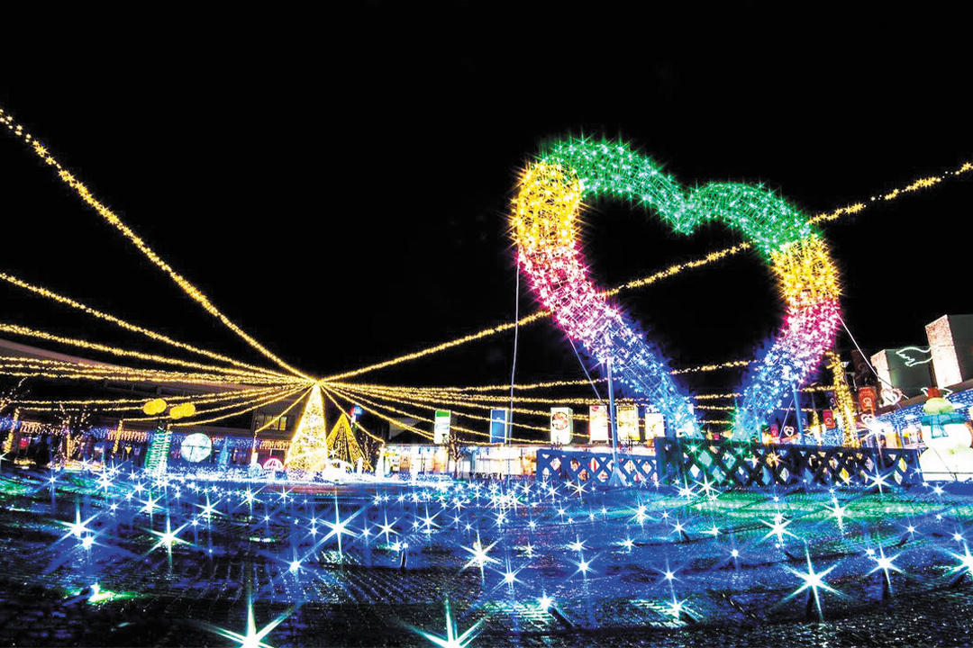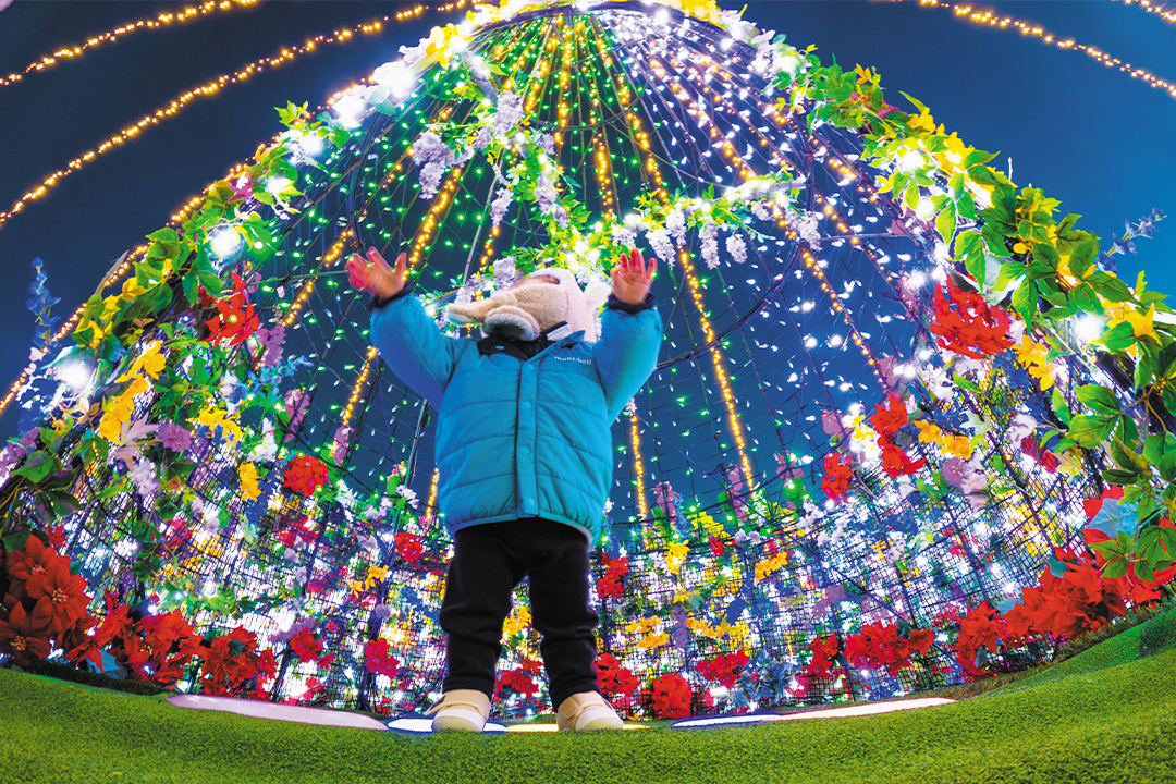 約20万球のLEDをぎゅっと凝縮して飾り、コンパクトながらも華やかな景色を楽しめる。