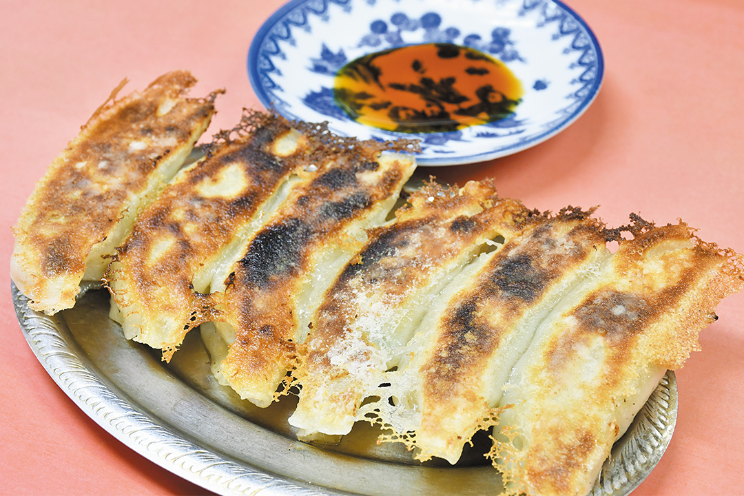 ぎょうざは下仁田産のニンニクを利かせたジューシーなあんが特徴で、皮はもっちり、焼き目はザクッとした食感が楽しい。