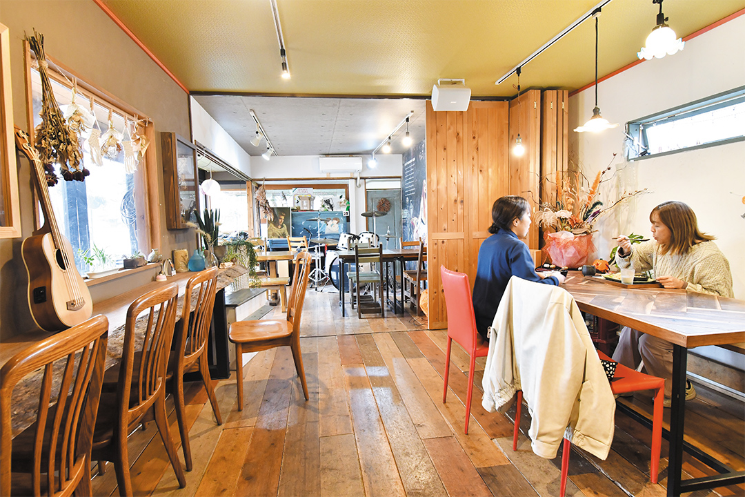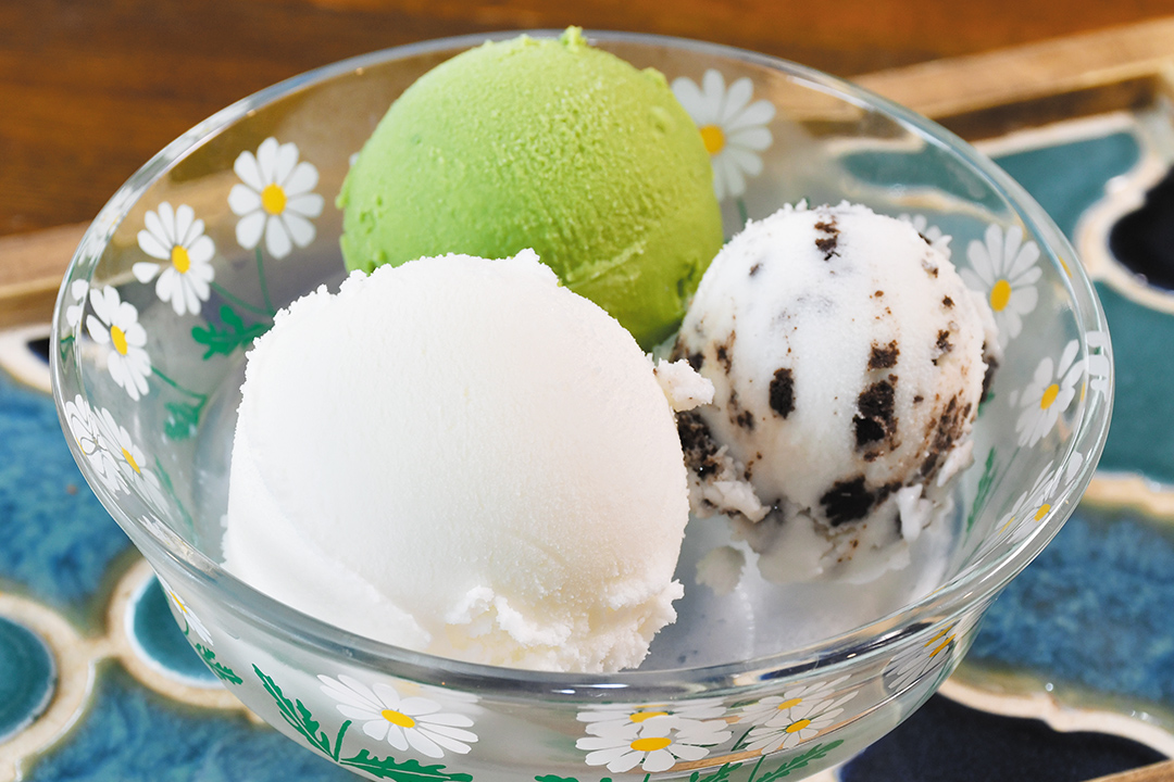 地元食材や季節の果物、野菜を使った手作りジェラートは、食後のデザートにピッタリ。月に1回、音楽ライブやワークショップも開催する。