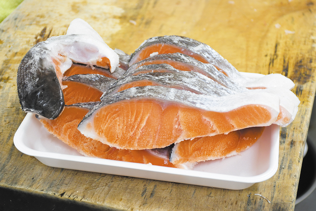 水産仲卸の髙草木商店では、第2・第4土曜の「鮭半身1,800円セール」が人気。