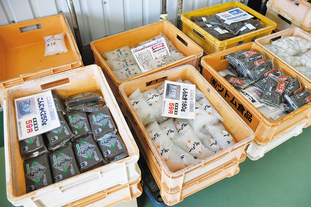 関連店舗では、こんにゃくやお茶、のりなどの加工品や調味料、卵や米、小豆などを販売。