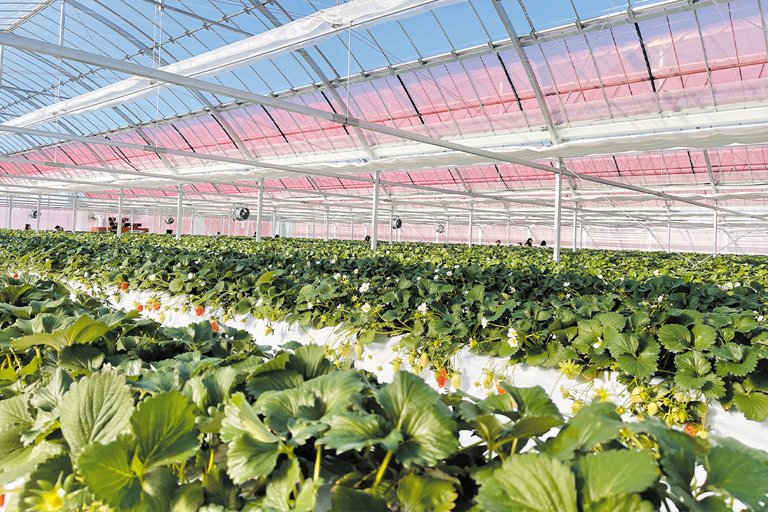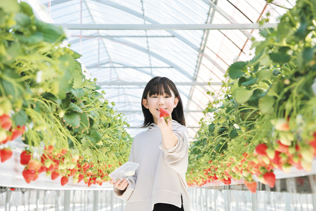 12月下旬から開始し、300坪の広いハウスで摘み取りを楽しめる。