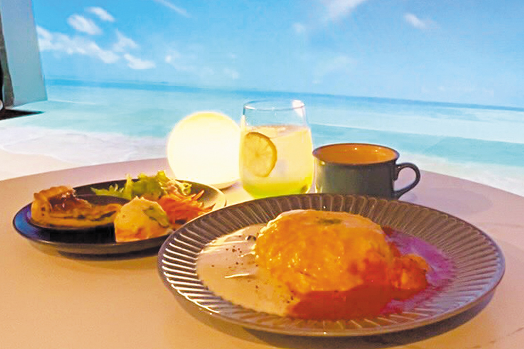 食事も魅力で、看板メニューはトマトソースとホワイトソースを一度に味わえる「2種ソースのオムライス」(1,320円)。