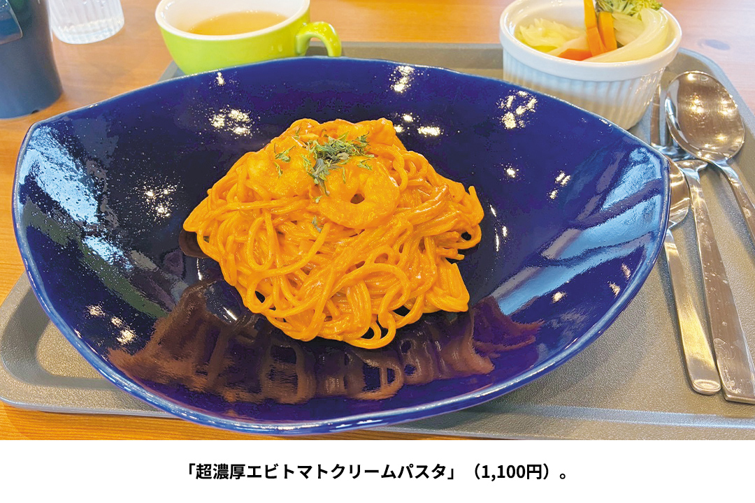 パスタは、エビの芳醇(ほうじゅん)な香りが口いっぱいに広がる「超濃厚エビトマトクリームパスタ」がイチ押しだ。