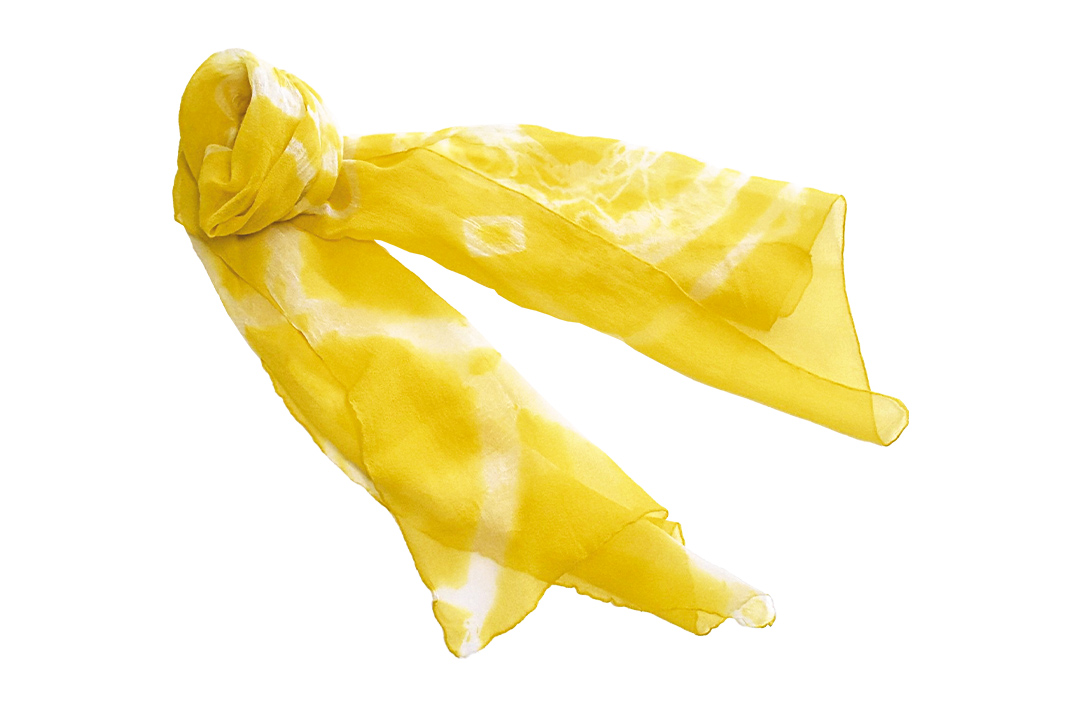 絹のポケットチーフやスカーフ、ストールの草木染、綿のハンカチやバンダナの藍染が楽しめ、自分だけの染め物を作ることができる。