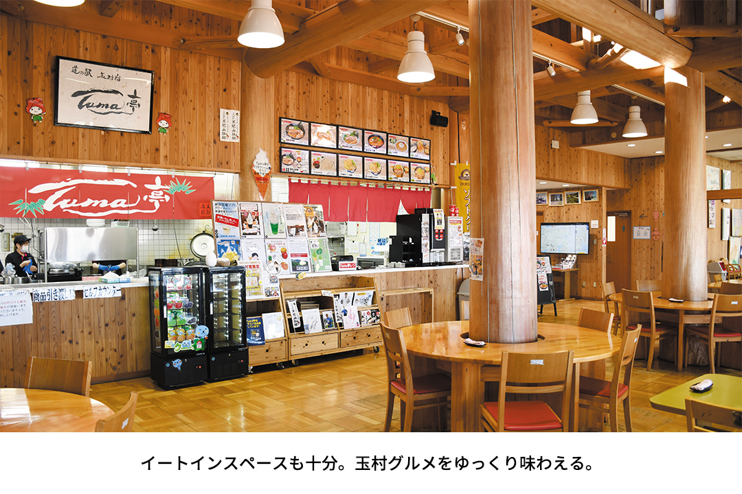 食事処(どころ)「Tama亭」は、上州麦豚の炙(あぶ)りチャーシューが自慢の「軍配山ラーメン」が看板メニュー。