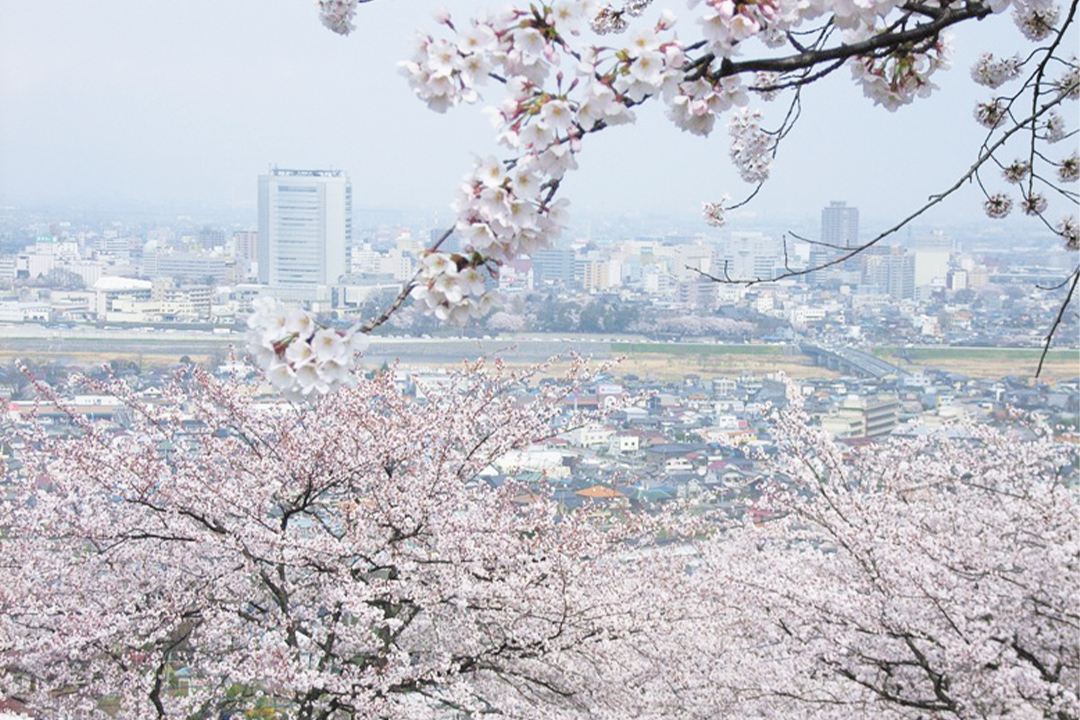 桜越しに高崎の街も望める。