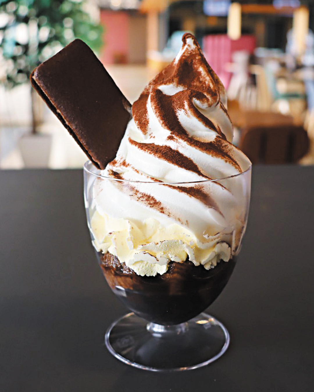 コーヒーゼリーの上に、エスプレッソを染み込ませたカステラ、ミルクソフトなどを重ね、苦味を利かせた大人な味わいに仕上げている。