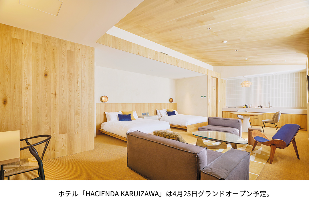開放的な空間で2種類のサウナが楽しめる温浴施設「AQUAIGNIS GARDEN SPA(アクアイグニス ガーデン スパ)」、ホテル「HACIENDA KARUIZAWA(ハシェンダ カルイザワ)」もあり、余暇やビジネス、日帰りや宿泊など多様なニーズに応える。