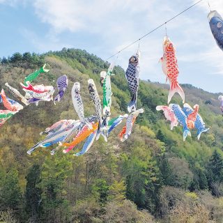 清流・神流川の上空を約800匹のこいのぼりが泳ぐ、神流町の春の風物詩。
