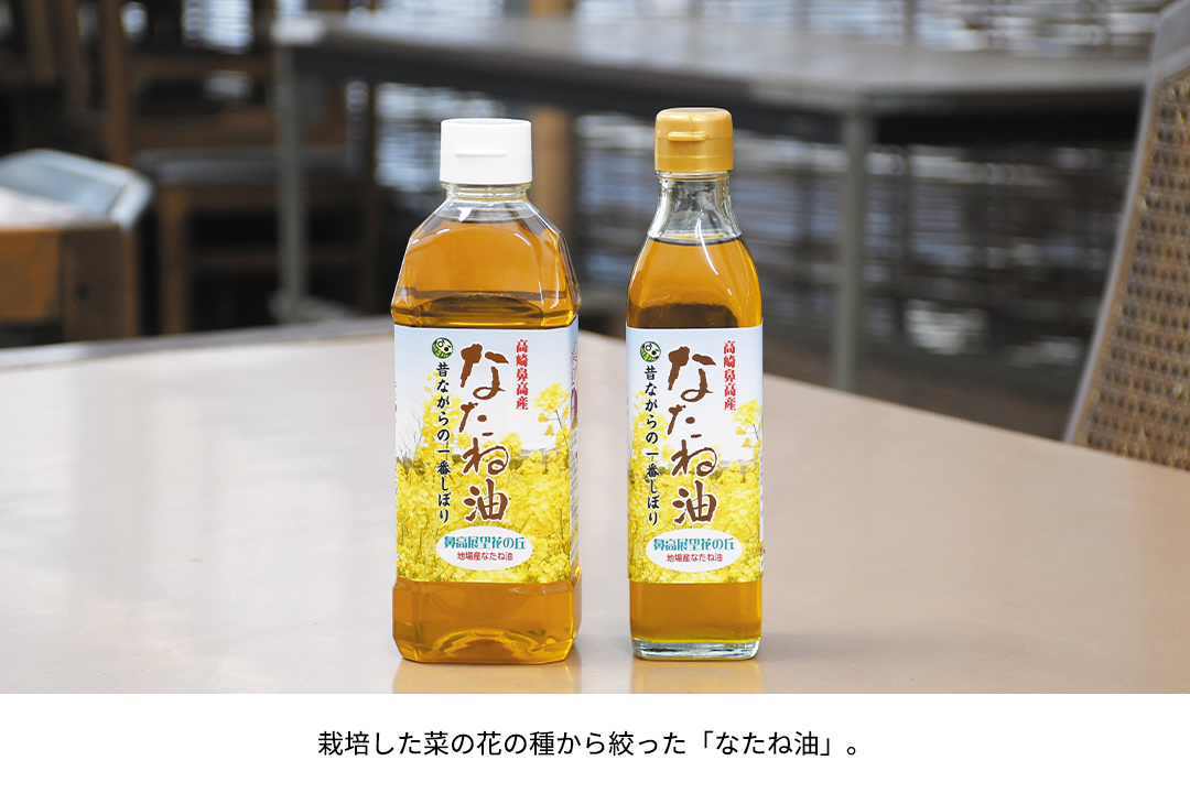 同丘で育った菜種を絞った「なたね油」の販売もある。