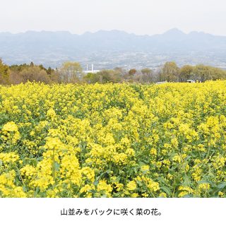 山々を背景に咲く一面の菜の花