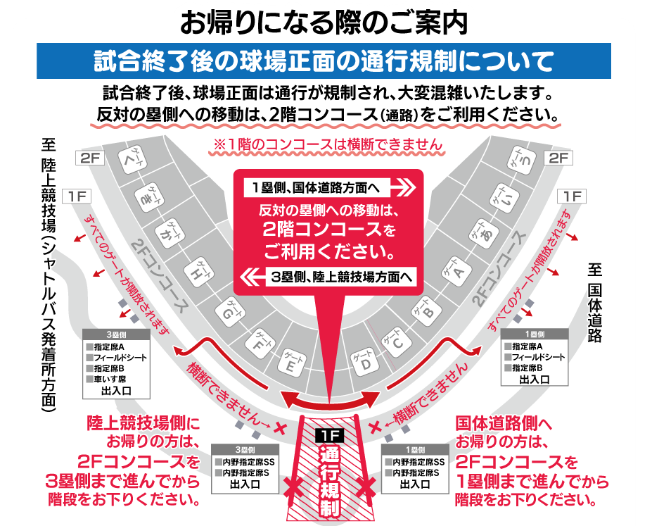 📢お帰りになる際は球場正面が通行できませんのでご注意ください。