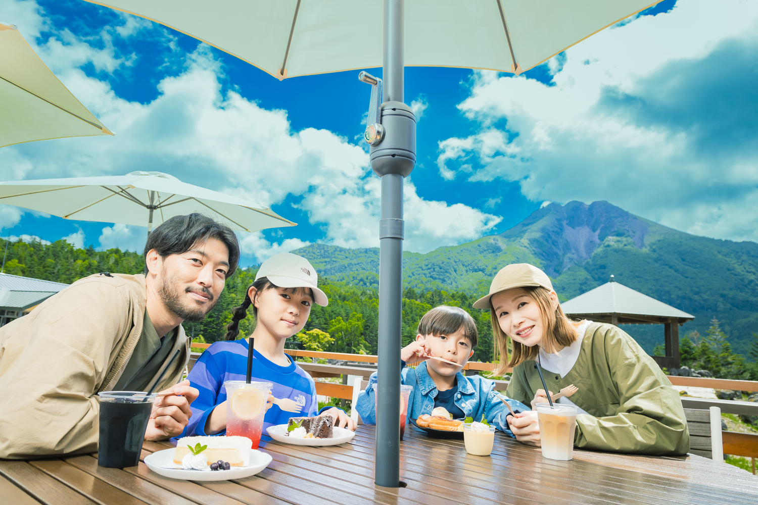標高2,000mの山頂駅にある展望テラス。スイーツやドリンクの充実したカフェも隣接。