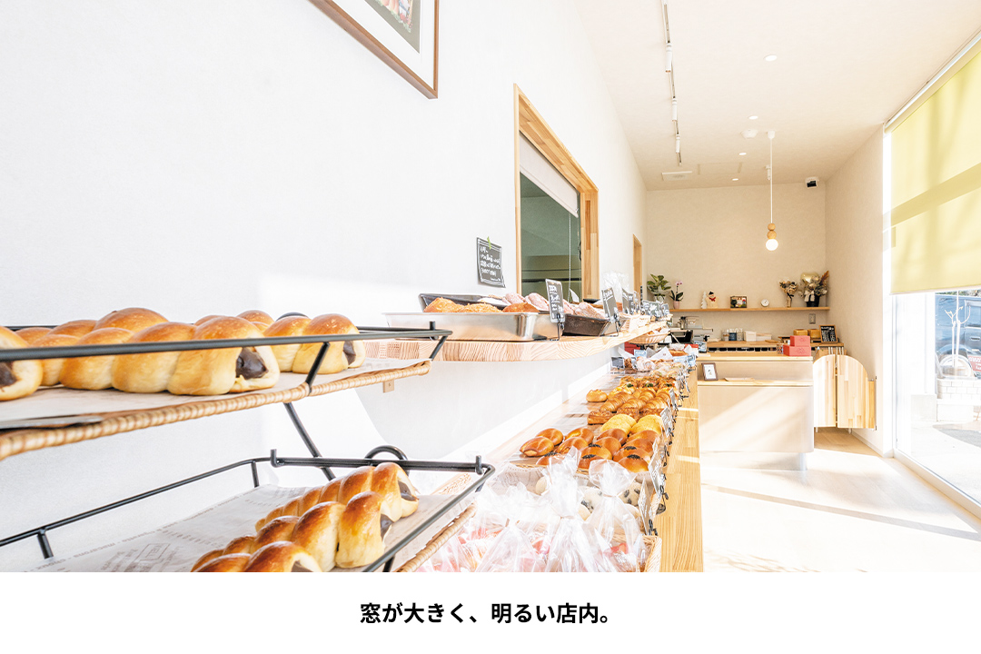 「毎日の暮らしの中でやさしい時間を届ける場所」をコンセプトに、毎日通いたくなる40種以上のパンが並ぶ。