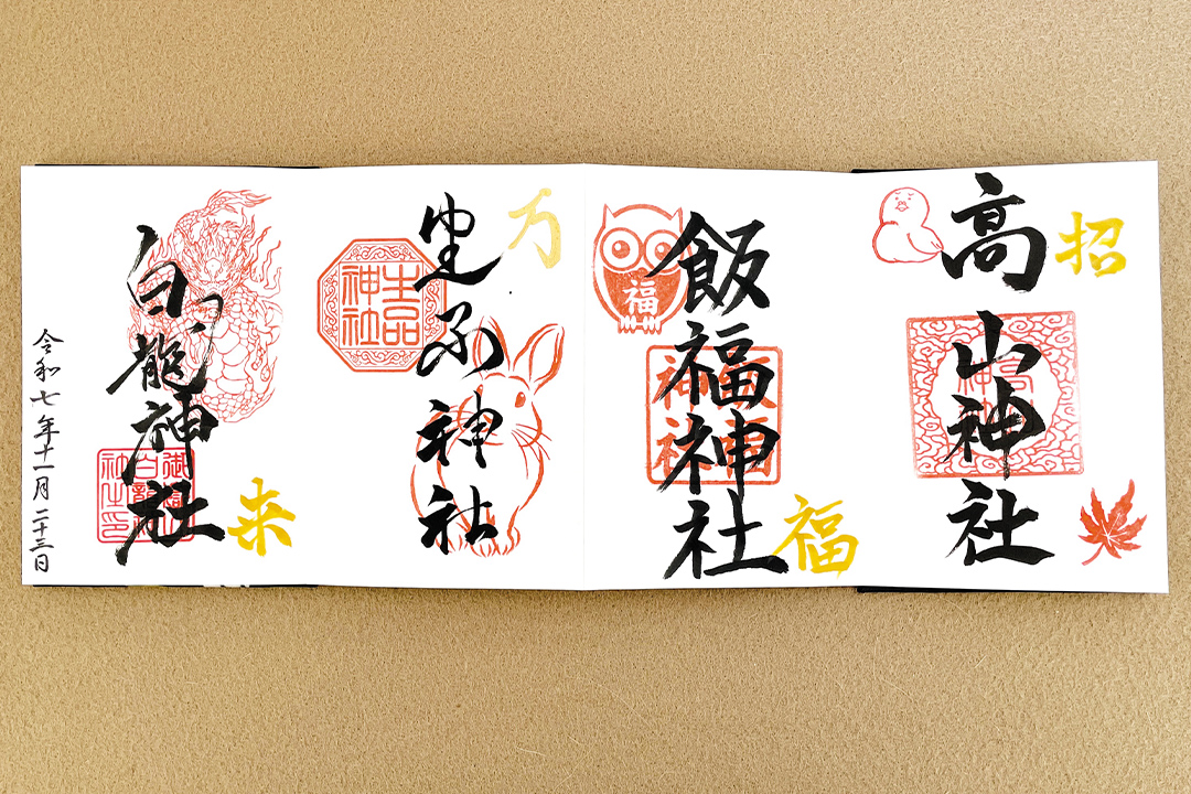 コラボ御朱印は高山神社(太田)、飯福神社(伊勢崎)、生品神社(太田藪塚)、白龍神社の宮司が書き入れる(初穂料2,000円)。