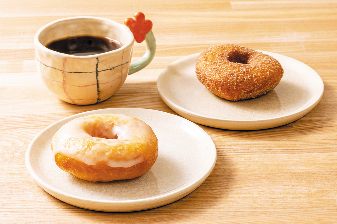 ドーナツ2種類(カフェタイムのみ、各250円)と「ハンドドリップコーヒー」(550円)。