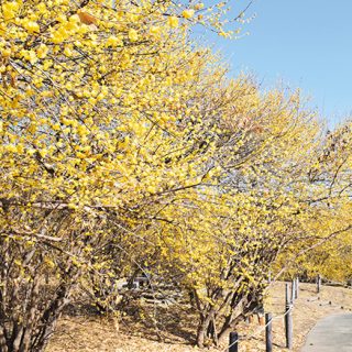 梅田湖ロウバイパークで花が見頃