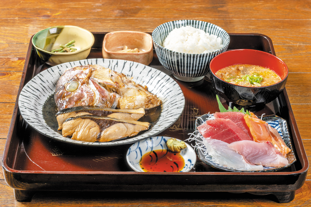 「煮魚刺身定食」(1,100円)。 ※写真は平日ランチ。