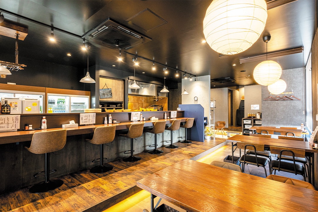 カウンター席、テーブル席、掘りごたつの座敷席を完備。
