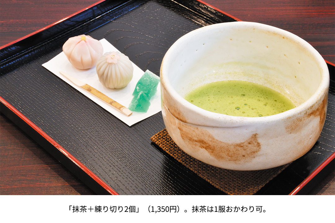 カフェとして利用し、注文してから点てる抹茶と季節の練り切りセットでくつろぐ午後のひとときも魅力的。