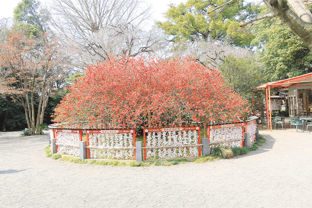 この時期は、境内にある県指定天然記念物「冠稲荷のボケ」の開花も重なり、見事な花を観賞しようと多くの人が訪れる。