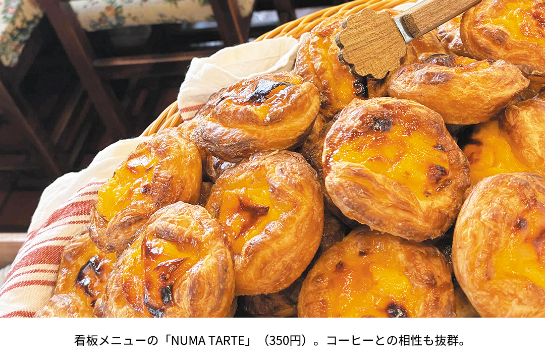 看板メニューのエッグタルト「NUMA TARTE(ぬま たると)」は、サクっとした生地と、地元産の卵を使った優しい味わいが特徴。