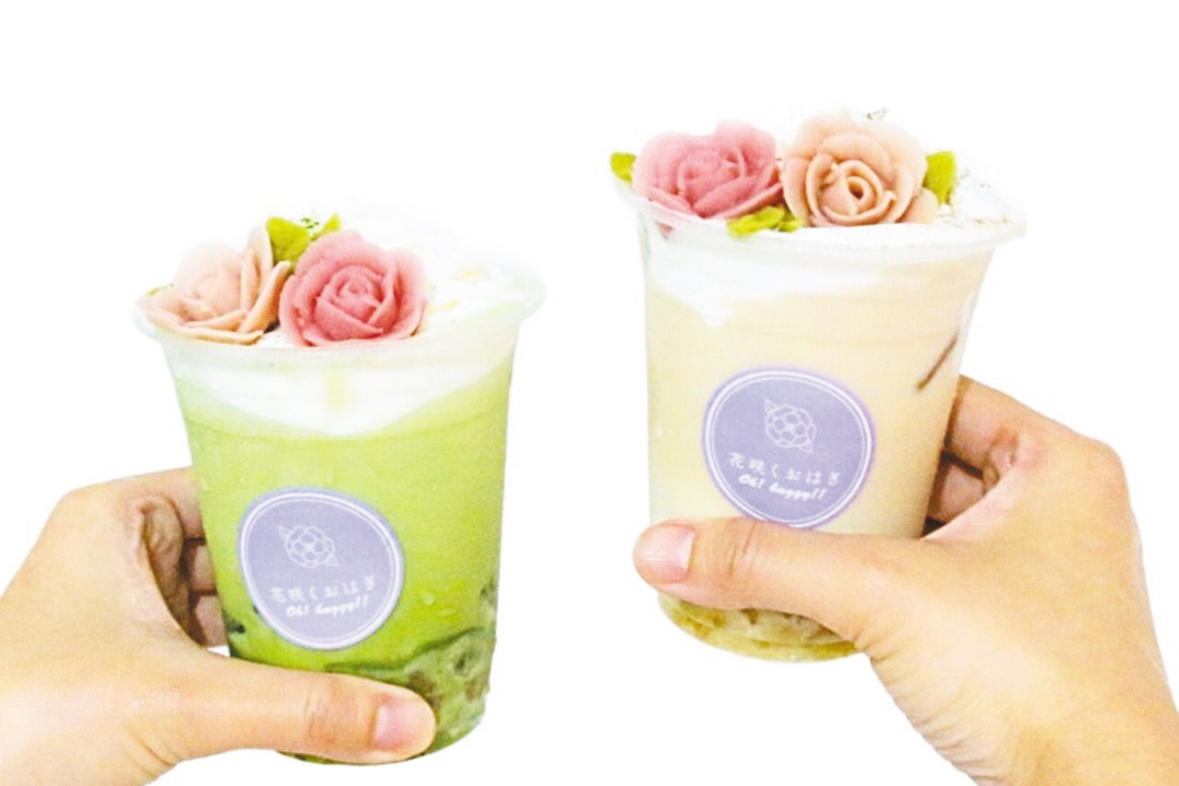 「抹茶ラテ」と「ほうじ茶ラテ」の2種がある「花咲くわらび餅ドリンク」(780円)。