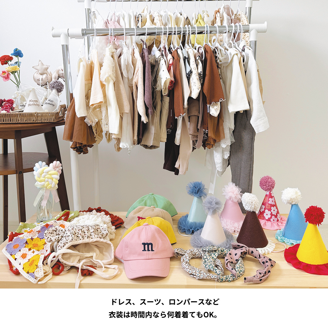 【料金】基本料金(スタジオ利用料)/30分2,500円~ オプション・選べるフォトブース /クーファンブース1,200円、テーブルブース1,600円 バルーン/小(ヘリウムガスなし)20円 小(ヘリウムガスあり)300円ほか