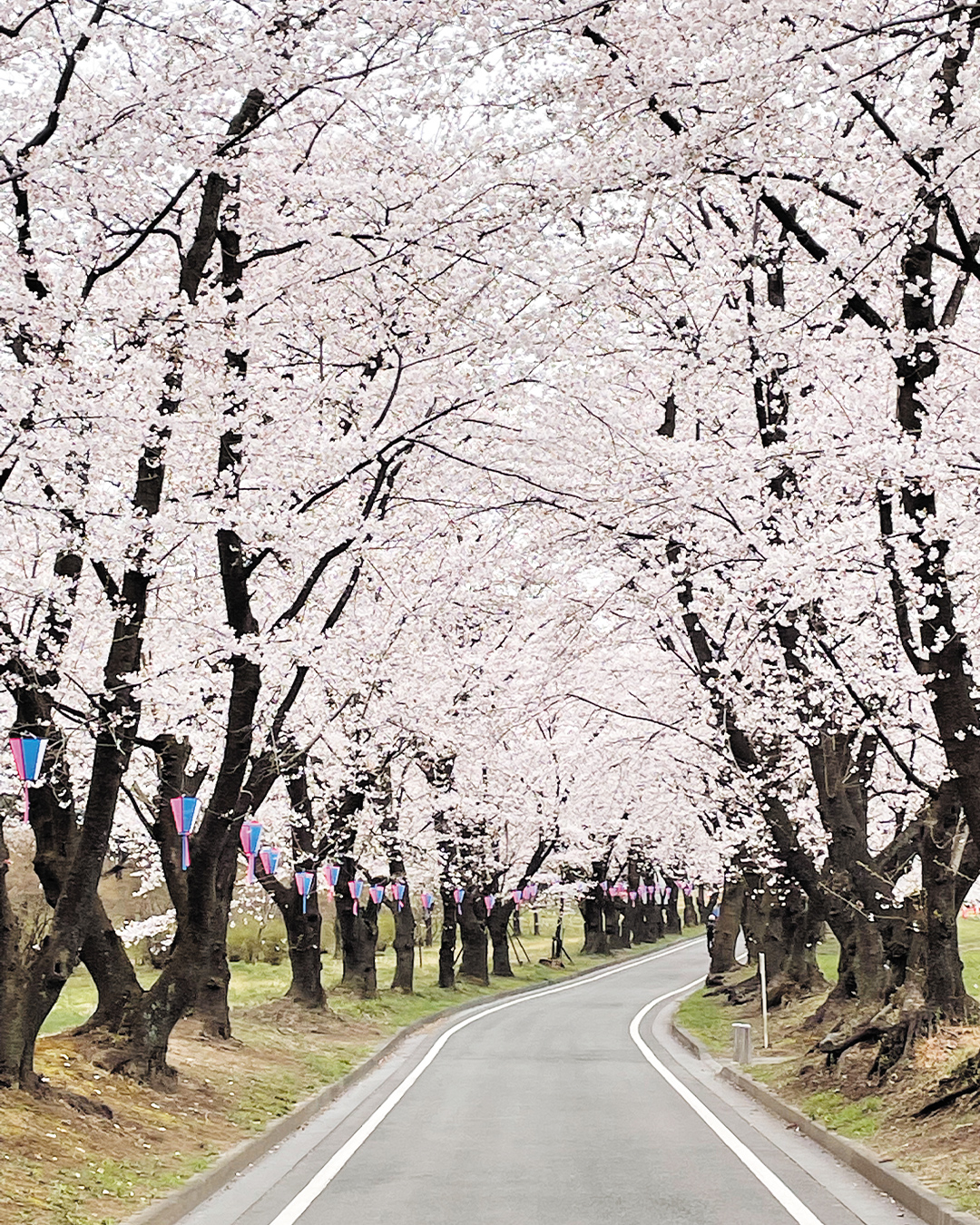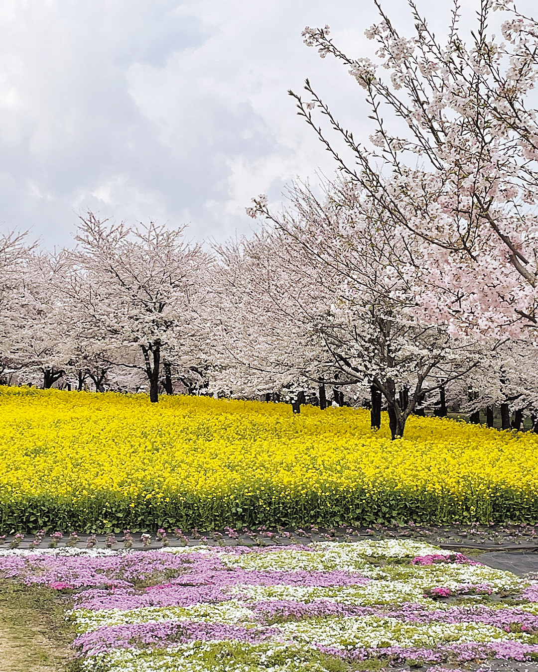 メインストリートの桜のトンネルや、菜の花畑との共演を楽しめる。