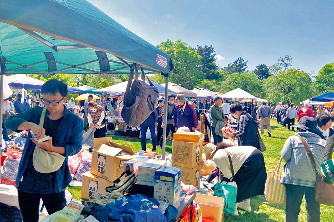 市庁舎前の広場も会場となり、大規模なフリーマーケットや、唐揚げやカレーといったフードを販売する「食道楽」などが開催される。