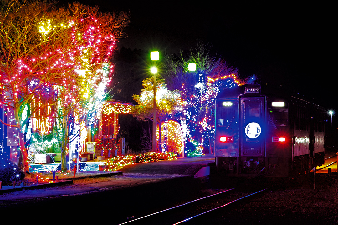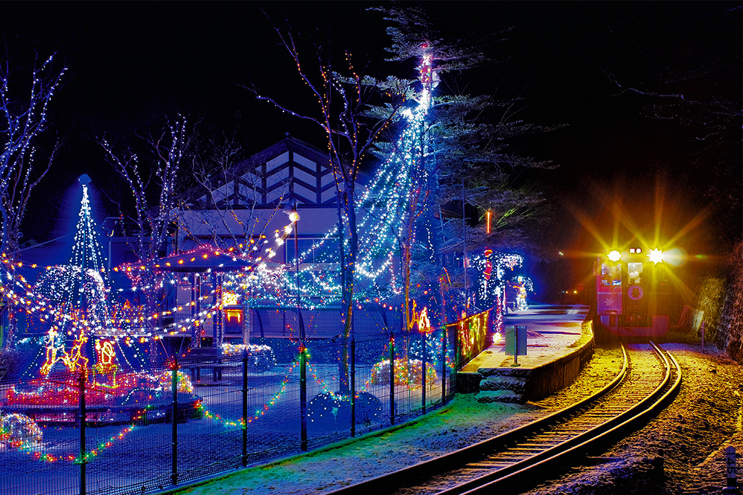 わたらせ渓谷鐵道の16駅がイルミネーションで彩られる。